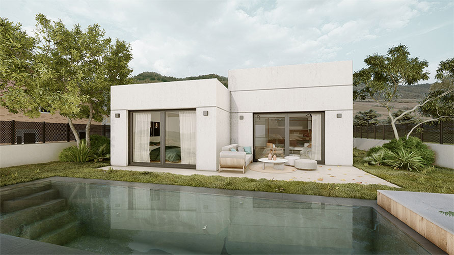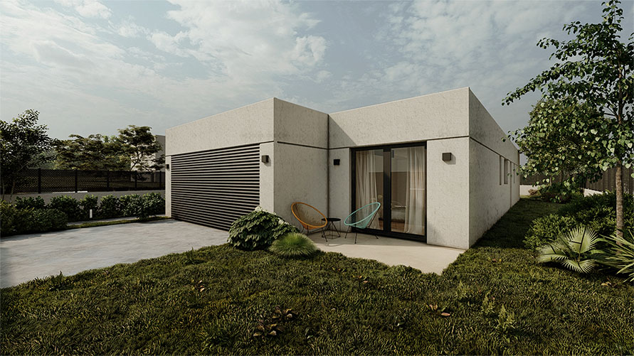 Proyecto de vivienda unifamiliar con amplios jardines verdes. Generamos espacios de vegetación para que la vida exterior sea igual de agradable que la interior. Esta casa busca la comodidad y practicidad que caracteriza a Obvio Arquitectura.