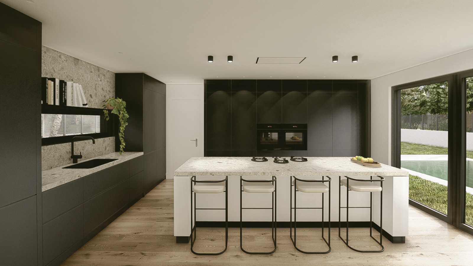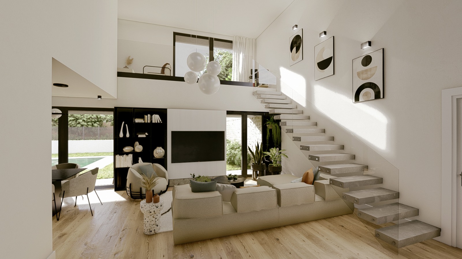 Proyecto de vivienda unifamiliar que se desarrolla en dos pisos. Tiene salón a doble altura, lo que genera una gran amplitud en el espacio principal de la casa. La mayor parte del tiempo transcurre en la planta baja, aunque la segunda consta de despacho y habitación de invitados.